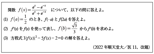 [B]双曲線関数のやさしい問題(2022年順天堂大/医11)