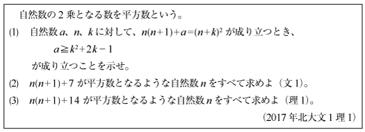 [B]平方数の整数問題(2017年北大文1理1)