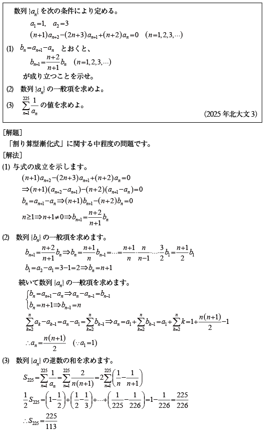 [B]割り算型漸化式に関する標準的な問題(2025年北大文系3)