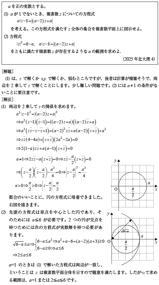 [C]複素数平面上の円の交点に関する問題(2025年北大理4)